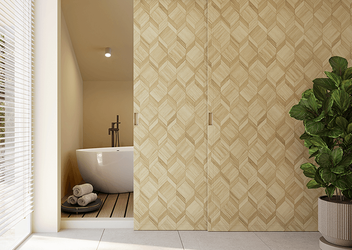 Textura Mageo. Textura sincronizada que encaixa perfeitamente na geometria do desenho, com poros e acentos de madeira.