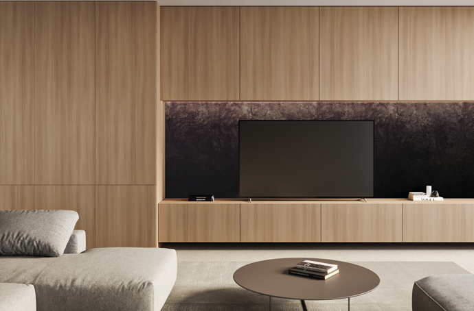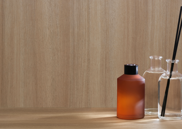 A vitalidade e o calor de um dia ensolarado foram as inspirações do MDF Nogueira Âmbar. As nuances amareladas e rosadas do padrão de nogueira da Guararapes evocam a beleza do sol tocando o mar e reforçam a sensação de calor e aconchego da madeira proporcionada pela sua tonalidade aquecida.